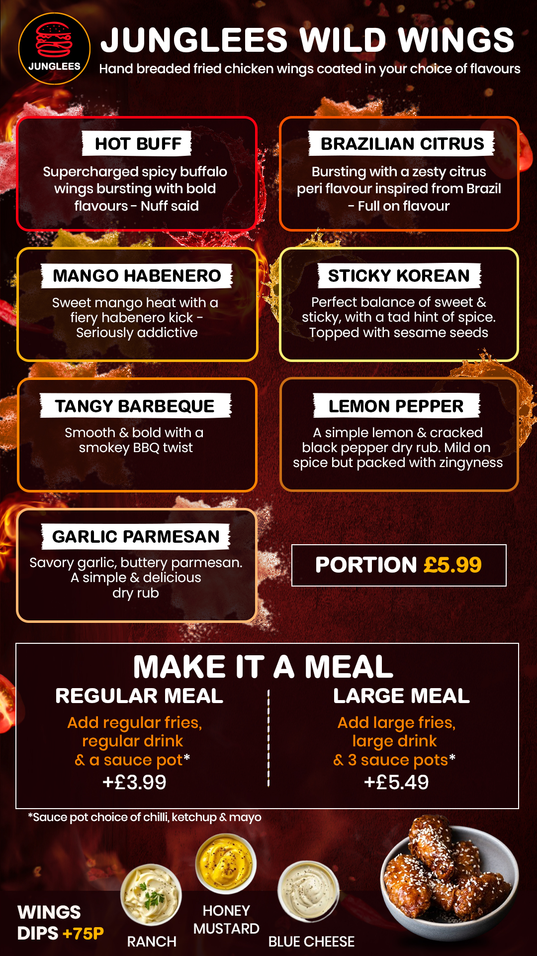 Established in 2021 we bring to you JUNGLEES Gourmet Burgers and Wild Wings.
